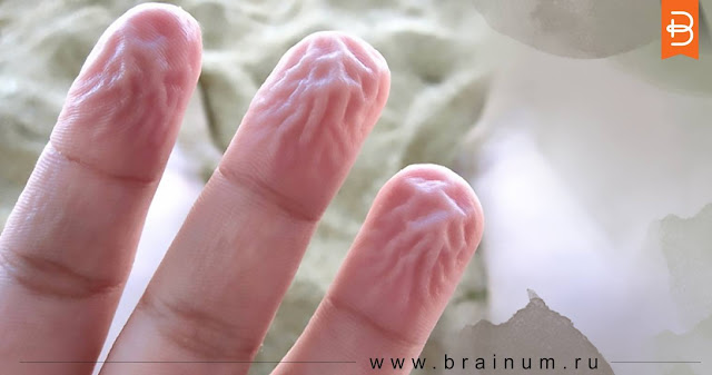 Почему у нас кожа на руках и ногах становится мятой только в грубой подошвенной части, а не по всему телу? Ученые предполагают, что это эволюционный способ приспособиться к долгому пребыванию в воде. Тот, у кого кожа в воде становится «жамканой», способен передвигаться по скользкому дну лучше, чем его гладкокожие соперники.