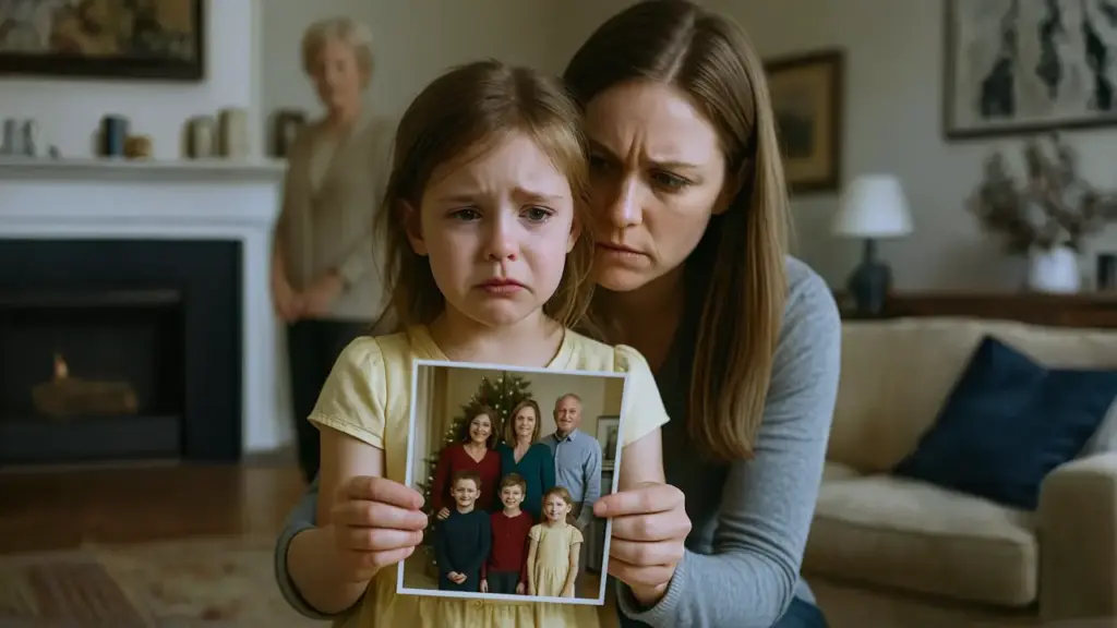 At the family photo shoot, my six-year-old daughter sat in the front row, smiling. We got the Christmas cards back, and she’d been photoshopped out of every single one. She burst into tears when she saw it, asking what she’d done wrong.