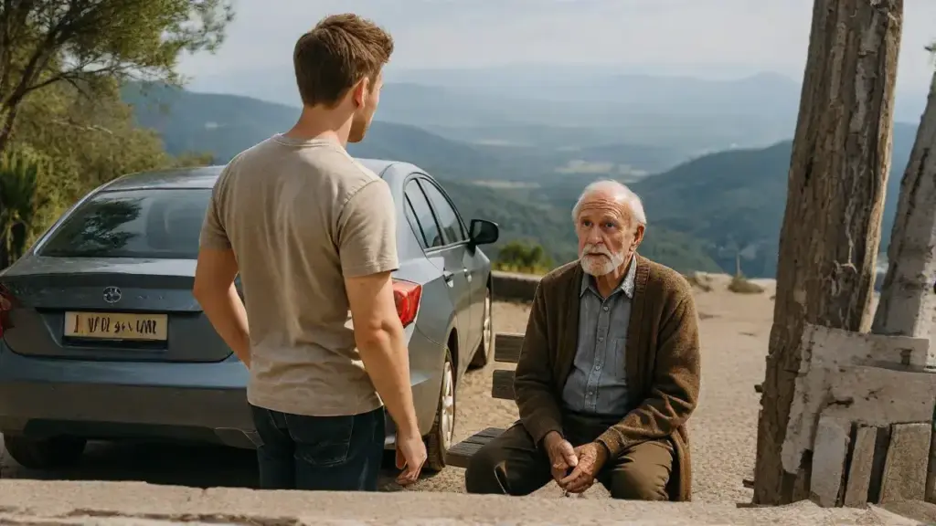 Finally, the GPS announced, «You have arrived at your destination.» I was at a scenic overlook: a small parking area carved out of the mountainside with a wooden viewing platform and a single bench. The view was stunning—valleys spread out below, distant mountain peaks, forests that seemed to go on forever—and sitting on the bench was an old man.