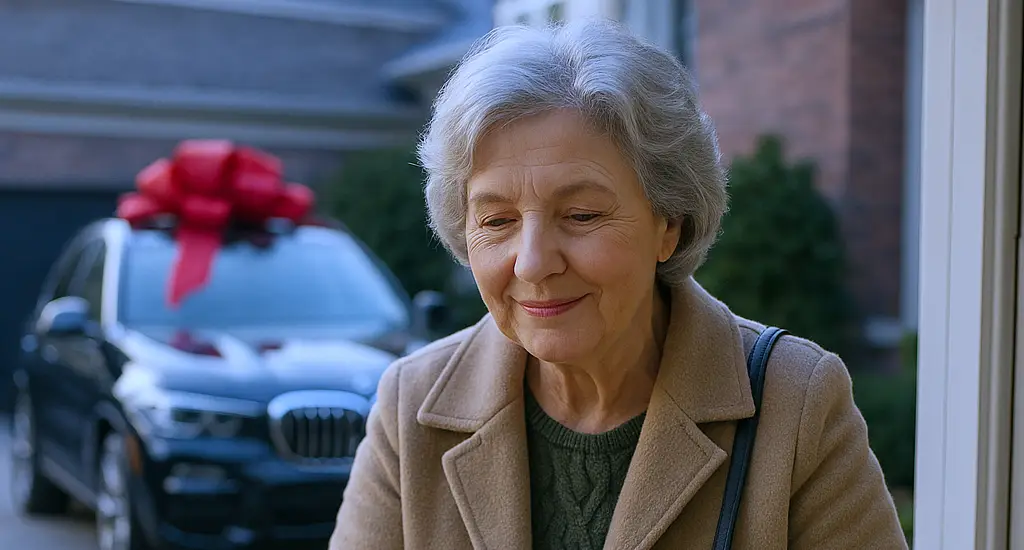 The BMW’s red bow gleamed under my son’s Christmas lights like a taunt. I watched from the kitchen window as Marcus handed Linda the keys to her brand new $60,000 gift, his face beaming with pride. «Merry Christmas, Mom Linda,» he called out, using that ridiculous nickname that made my teeth clench.