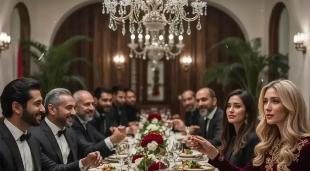 She knew. They all knew. The crystal chandelier above cast dancing shadows across the white linen tablecloth as Tariq leaned toward his younger brother Omar, speaking in rapid Arabic.
