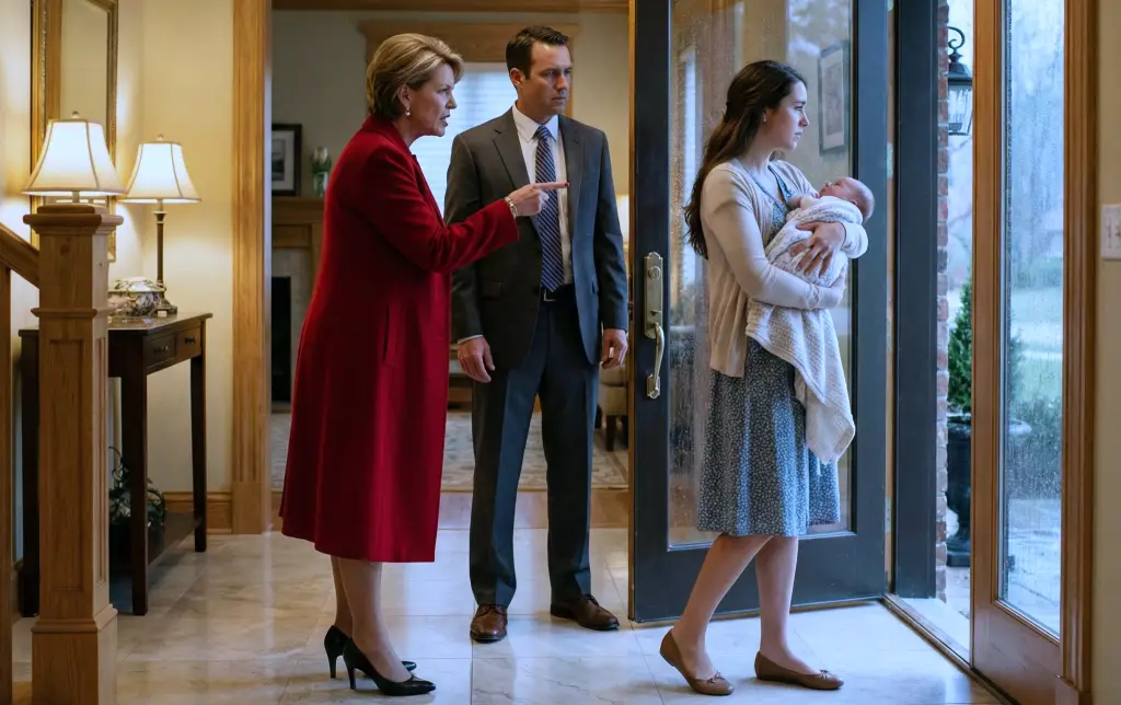 На розі вулиці, під козирком закритого магазину, тулилася молода дівчина. Вона притискала до грудей маленьку дитину, намагаючись закрити її своїм тілом від косих струменів крижаного дощу. На ній було стареньке, зовсім не по сезону легке пальто, яке вже давно промокло наскрізь. Її тонкі руки тремтіли, але вона продовжувала ніжно гойдати згорток, намагаючись зберегти хоч крихту тепла для малечі.