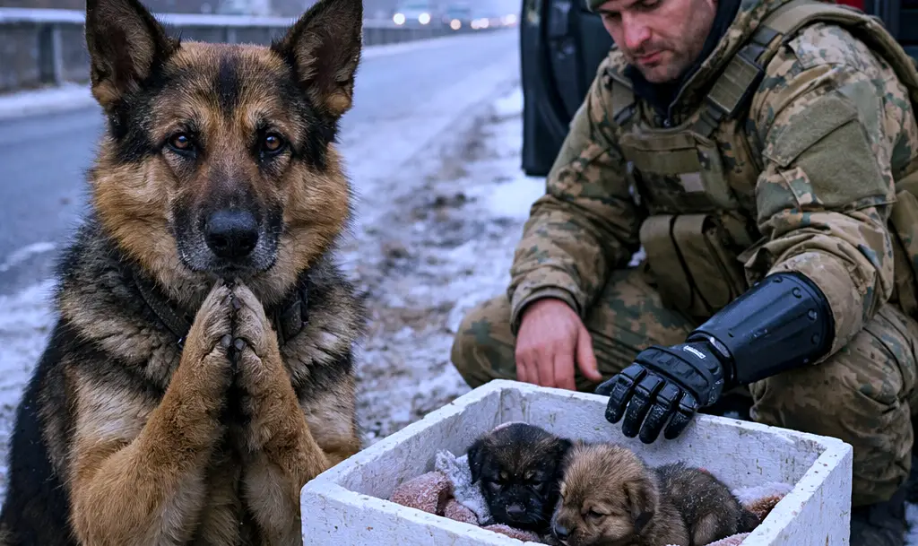 Вівчарка зупинила машину на зимовій дорозі. Вона не знала, що водій із “залізною рукою” піде заради неї до кінця