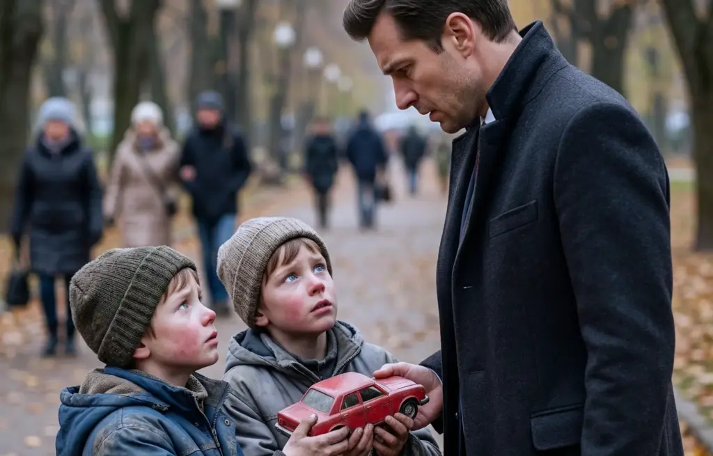 Мільярдер раптом зловив себе на думці, що не може відвести погляду від цих дітей. Десь глибоко в грудях ворухнулося дивне, давно ампутоване відчуття — наче щось болісно стиснулося під ребрами. Цей серйозний, благальний погляд, ця дбайливість, з якою малі руки тримали пошарпаний пластик, резонували в нього з незрозумілою силою. Холодна логіка успішного бізнесмена миттєво капітулювала.