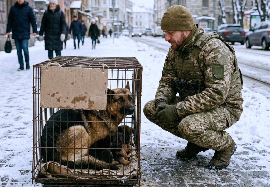 Клітка була нестерпно тісною для великої тварини. Її кути проїла глибока іржа, а металеві прути взялися твердою крижаною кіркою. Вівчарка всередині дрібно, безперервно тремтіла, але жоден м’яз її тіла не розслаблявся. Вона тримала глуху оборону, захищаючи своїх малюків від усього світу. Двоє цуценят тулилися глибоко в її шерсті, їхні крихітні тільця завмерли, ледь помітно дихаючи.