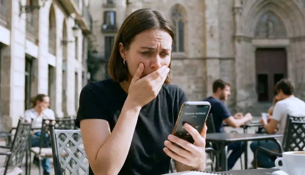I stayed silent, holding my phone against my ear while tourists walked past my café table in Gracia, completely unaware they were witnessing the moment my ex-husband’s new life imploded.