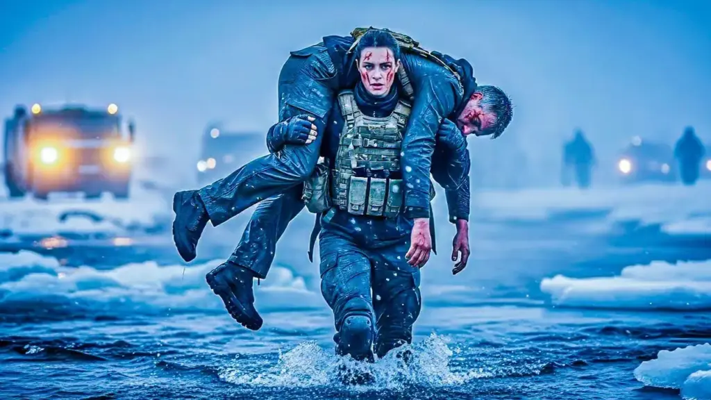 Then, the river rippled. A woman rose from the black water, ice sliding from her cloak. A golden rifle was cradled in her arms like a promise. She didn’t run; she listened to the wind, the distance, and the guilt.