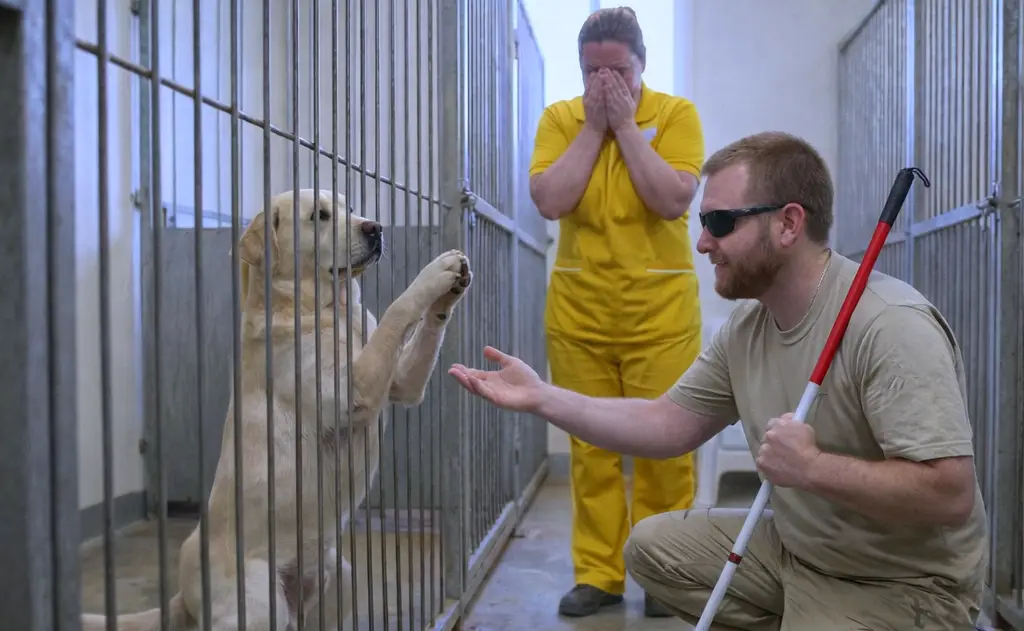 Слепой ветеран зашел в клетку к самому опасному псу приюта: то, что произошло дальше, заставило персонал плакать